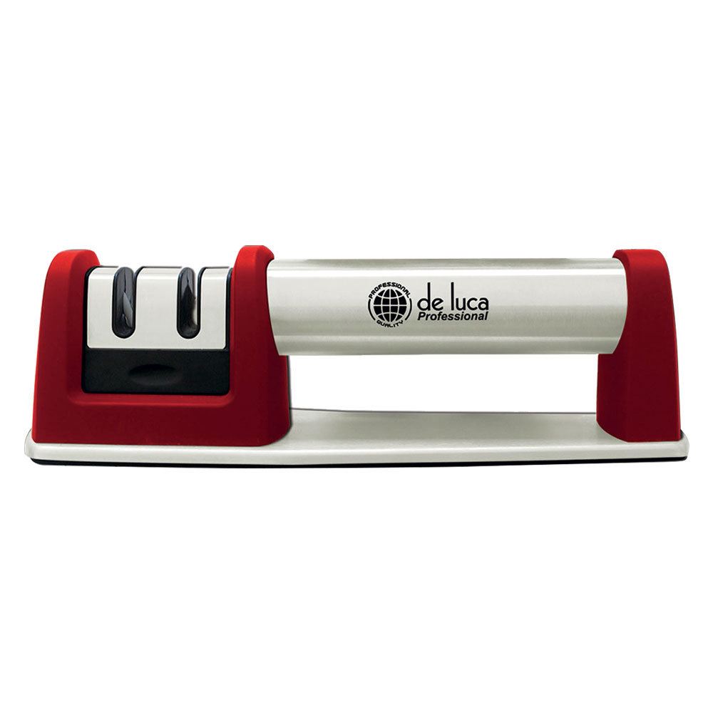 Con due vani per doppia funzione: uno con lame al tungsteno per affilatura grossa, l’altro con lame in ceramica per affilatura fine. Base antiscivolo per utilizzo sicuro. Non lavabile in lavastoviglie.