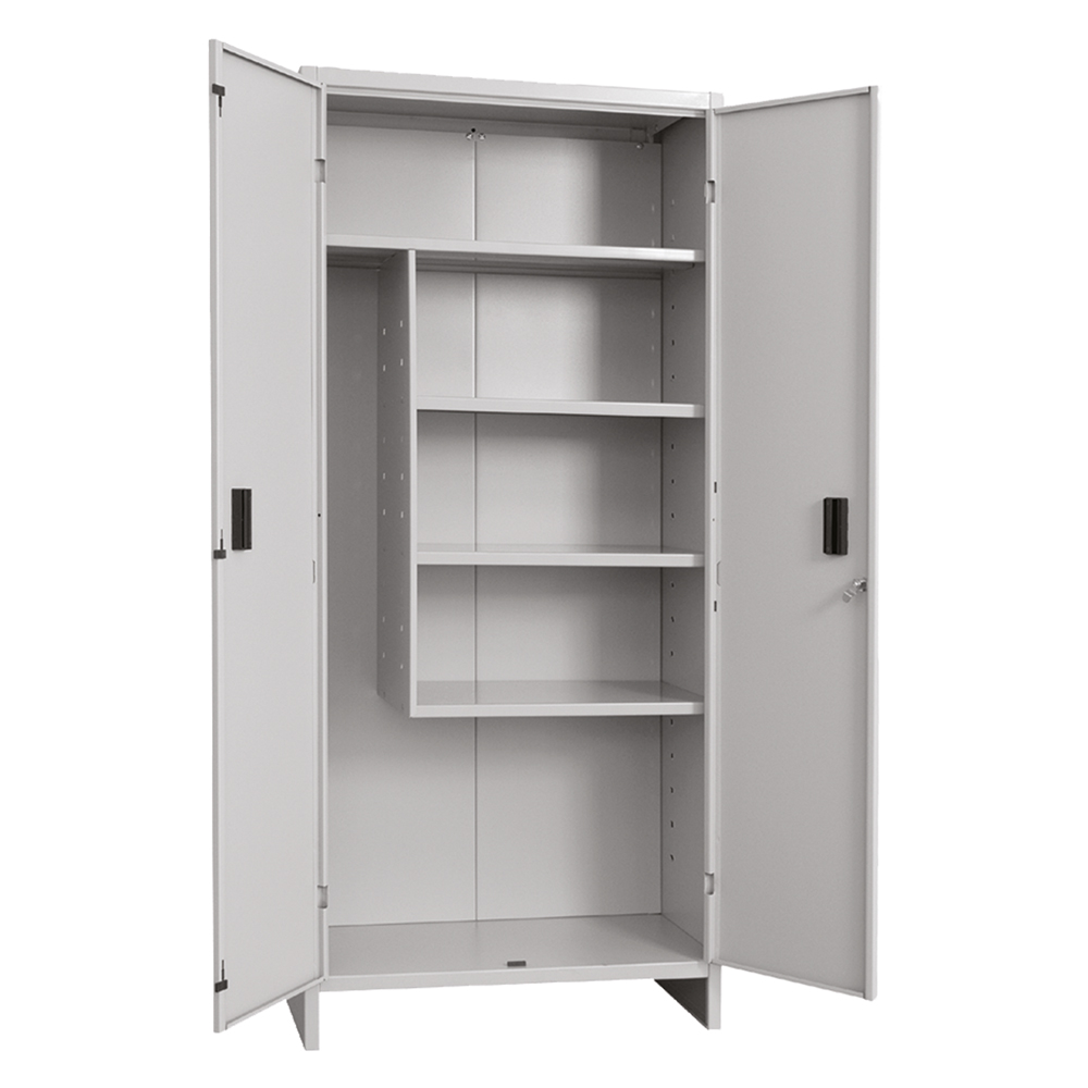 Fornito smontato. In lamiera verniciata. Completo di una mensola grande e tre piccole. Spessore 6/10. E’ una soluzione pratica e robusta per l’organizzazione degli strumenti di pulizia in ambienti domestici e professionali.