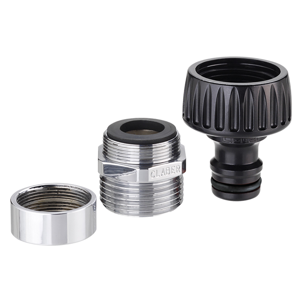 Da interno, per rubinetti con filetto maschio da 22 o femmina da 24 mm. Con filtro ed adattatore filettato in metallo.