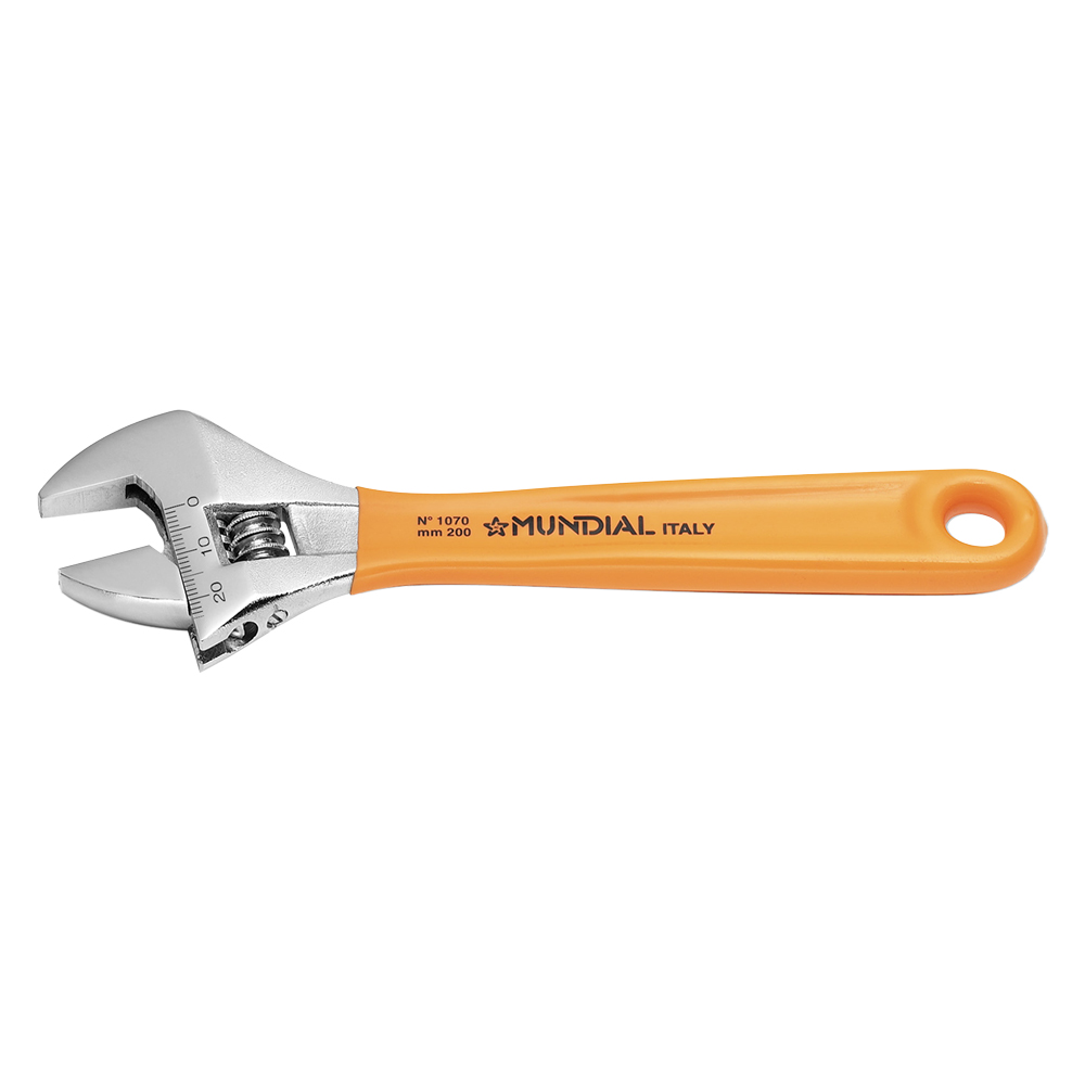 In acciaio cromo vanadio, finitura cromata. Manico ricoperto in plastica morbida antiscivolo. DIN 3117 – ISO 6787.