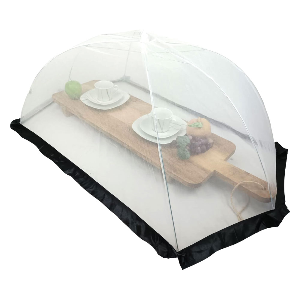 Realizzato in nylon e metallo. Facile da piegare per una migliore conservazione. Perfetto per proteggere il cibo da animali domestici e insetti. Colore bianco/nero.