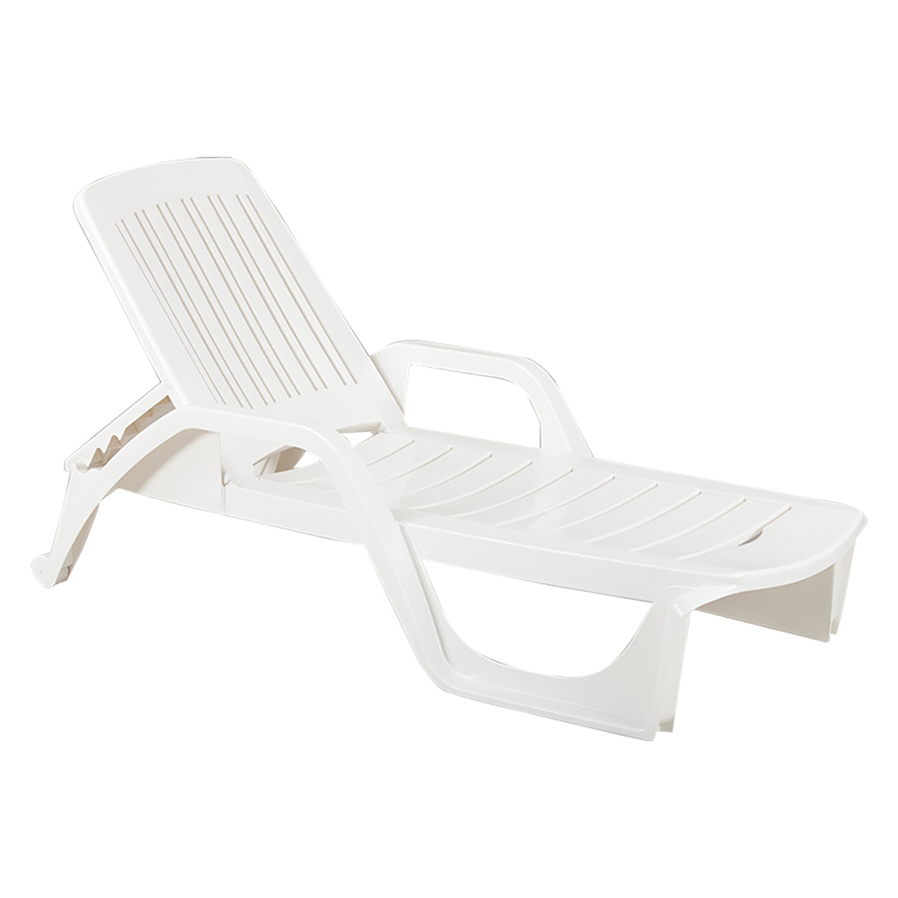In polipropilene. Sovrapponibile. Resistente agli agenti atmosferici. Dimensioni cm 71×190 H.46. Regolabile in diverse posizioni.