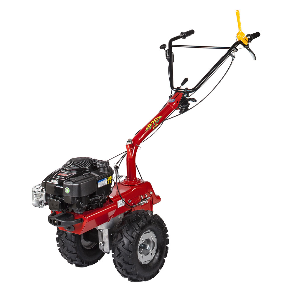 Solo corpo macchina. Multi attrezzo trasformabile da falciatrice ad arieggiatore e zappatrice. Motore 4 tempi Loncin 224 OHV, alimentazione benzina. Doppia configurazione: attrezzo frontale 3 marce + 2 retromarce, attrezzo posteriore 2 marce + 1 retromarcia. Trasmissione a ingranaggi e vite senza fine in bagno d’olio e cinghie. Avviamento a strappo. Manubrio registrabile verticalmente e lateralmente, innesto attrezzi a leva in lamiera con sistema di sicurezza integrato. Ruote trazionate antiforatura profilo tractor con cerchioni (15×6,00-6).