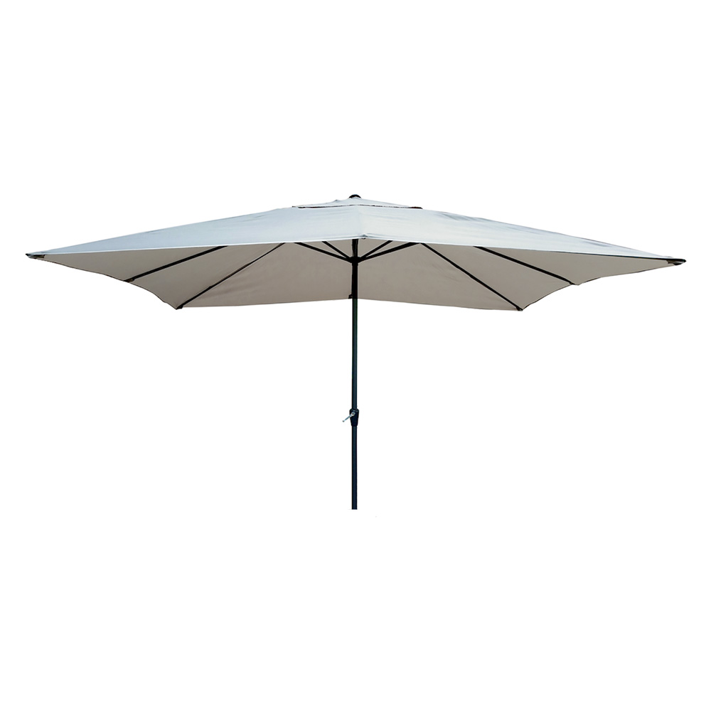 Telaio in alluminio, palo da Ø 48 mm. Telo in poliestere da 180 gr/mq. Con 8 stecche in ferro da 12×18 mm verniciate a polveri. Arganello per facile apertura/chiusura. Fornito senza base.