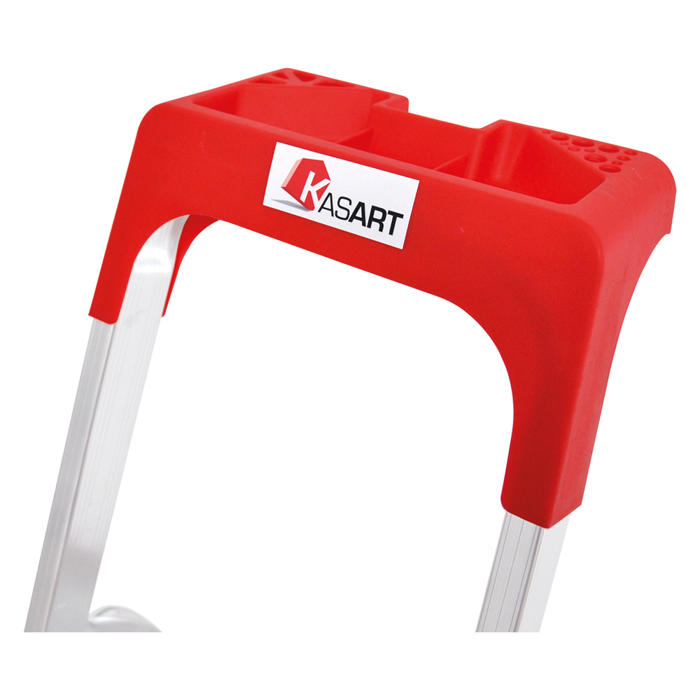 Accessorio. Dotato di scomparti, supporti forati per l’appoggio di piccoli attrezzi manicati e gancio centrale. In plastica resistente, colore rosso.
