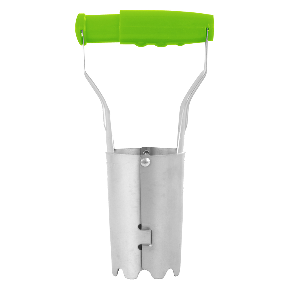 In acciaio inox. Impugnatura ergonomica in plastica. Adatto per piantare bulbi e piante.