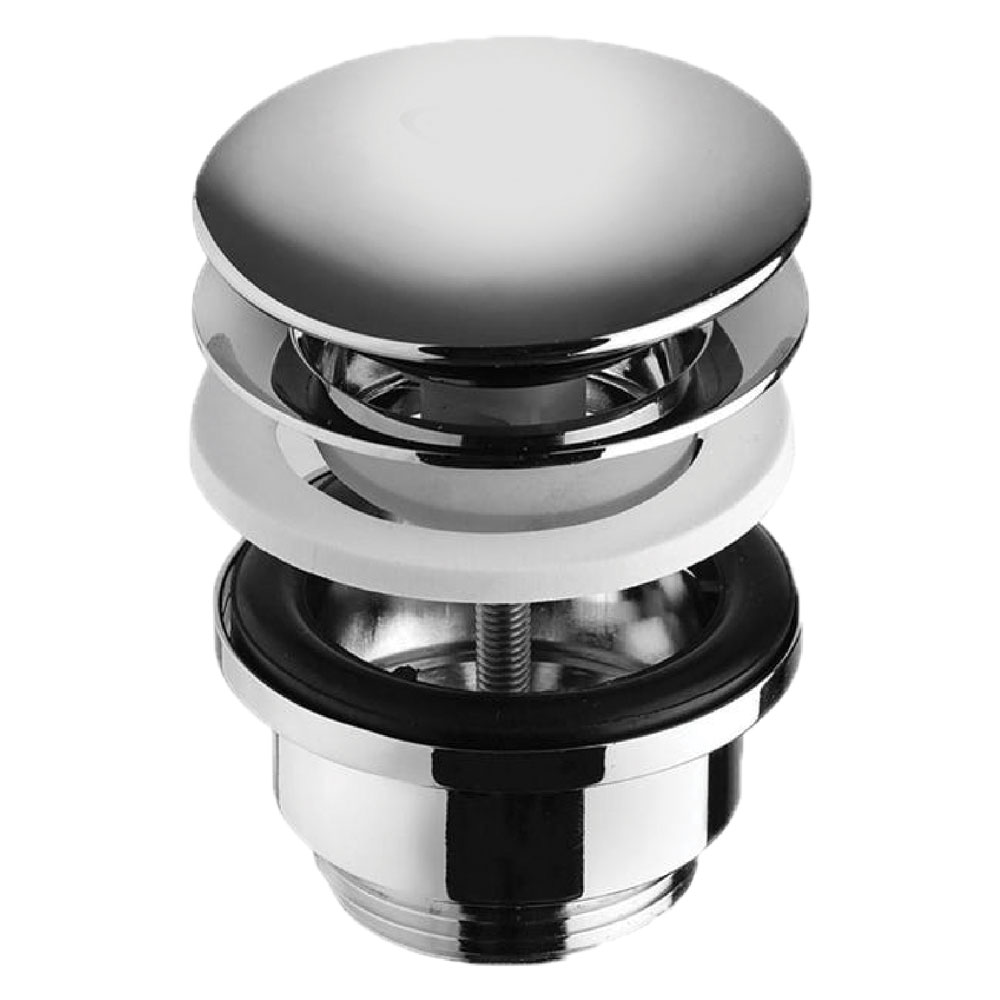 Per sanitari. Sistema di scarico automatico ‘click-clack’. Tappo tondo, Ø 63 mm, h. 65 mm max. Applicabile a bidet e lavabi con o senza troppo pieno.