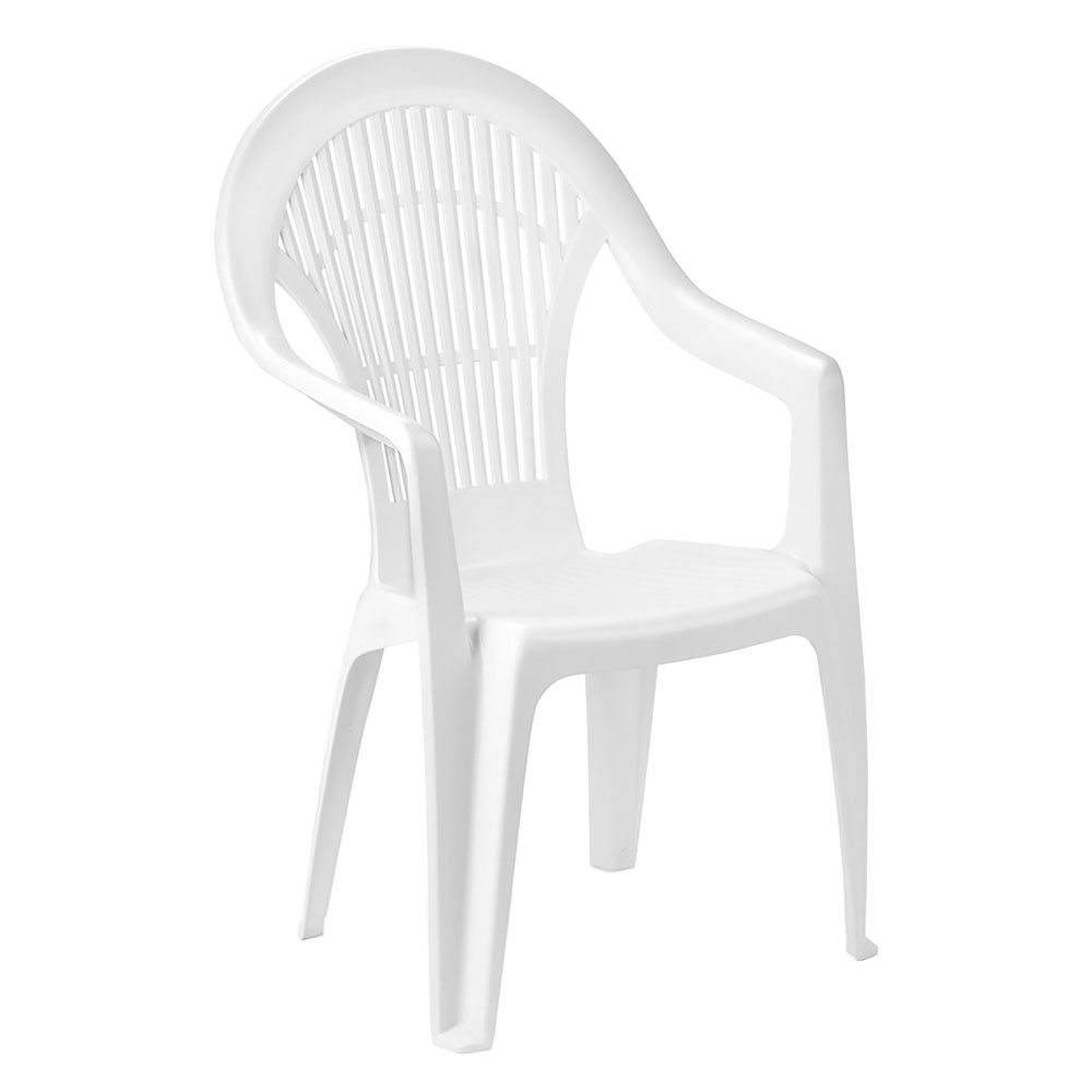 Schienale alto. Realizzata interamente in polipropilene, elevata resistenza agli agenti atmosferici e raggi UV. Moderna ed elegante allo stesso tempo, risulta essere un giusto compromesso per chi desidera un prodotto robusto, piacevole e che duri nel tempo. Dimensioni: cm.57,5x56xh.94. Impilabile.