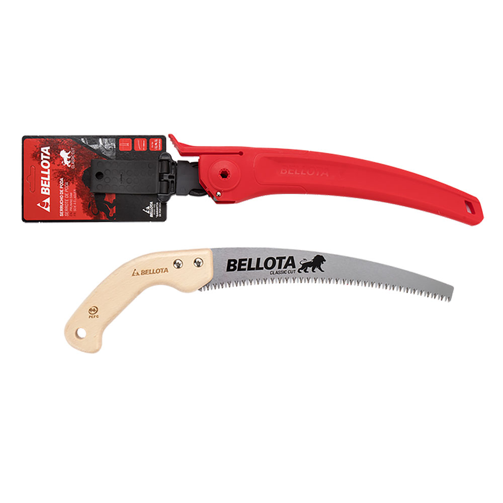 Manico in legno verniciato a bordi arrotondati per facilitare ed agevolare lavori intensivi. Lama curva in acciaio a finitura lucida, dentatura giapponese con tempratura ad impulso, geometria triscata. Altezza denti 7 mm. Include fodero che, oltre ad utilizzarlo come custodia, permette di poterlo agganciare alla cintura e. Indicato per il taglio di rami sopra la spalla. Peso 365 gr.