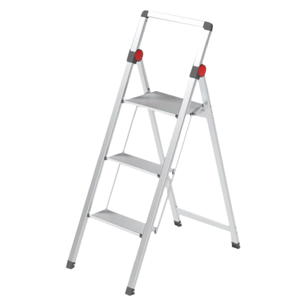 In alluminio anodizzato. Leggerissimo, con piedini antiscivolo zigrinati, piattaforma in alluminio. Superficie gradini da 10 cm di larghezza. Fissaggio gradini con rivetti. Conforme alle norme vigenti EN131 D.Lgs 81/08. Portata Kg 150.